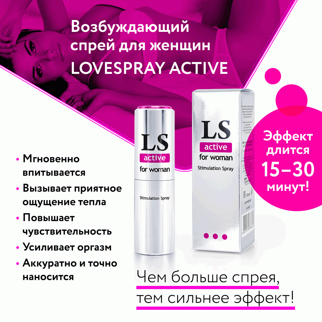 Готовься к наслаждениям! «Lovespray active» - быстрый способ привести чувства и сексуальное желание в тонус.