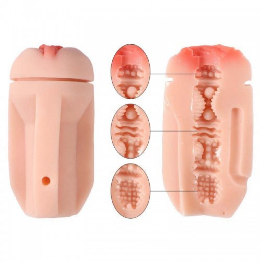 Внутри находится вставка-вагина, вполне реалистично имитирующая вход во влагалище.