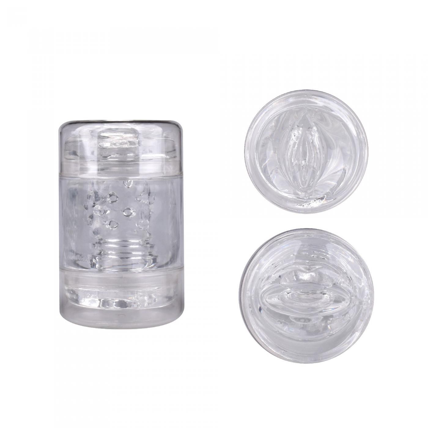 Прозрачный мастурбатор со сквозным каналом и имитацией с обеих сторон влагалища и анального отверстия.