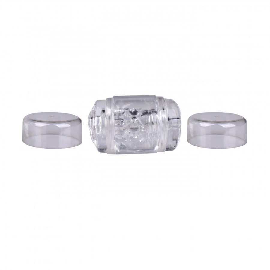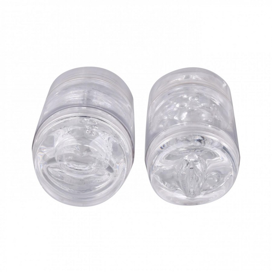 Прозрачный мастурбатор со сквозным каналом и имитацией с обеих сторон влагалища и анального отверстия.